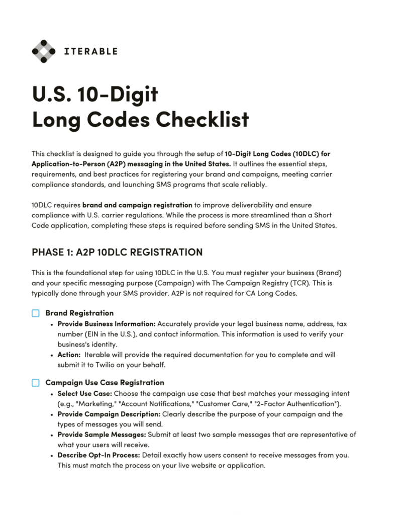 U.S. 10-Digit Long Codes (10DLC) Checklist