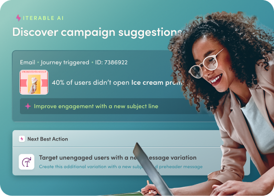 Our AI for email marketing capabilities optimize send time, frequency, and channel selection to automatically maximize your email open rates and conversions.