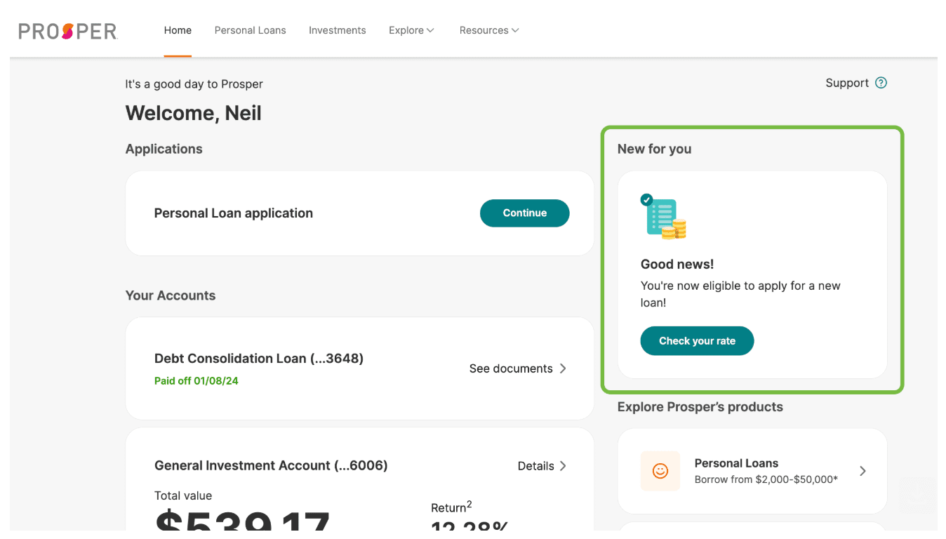 Using Iterable’s Embedded Messaging, Prosper achieved impressive results by targeting existing customers eligible for a second personal loan. These customers, who frequently log in to their accounts for servicing needs, represent a high-potential segment due to their established relationship with Prosper. By delivering tailored messages directly within the customer dashboard, Prosper effectively highlighted key value propositions, such as better rates and higher approval odds.