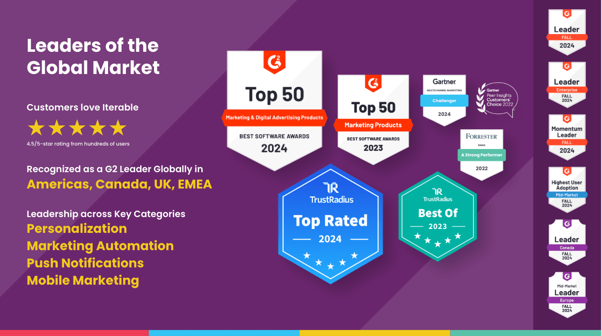 Iterable Celebrated by G2, Gartner Peer Insights, and TrustRadius