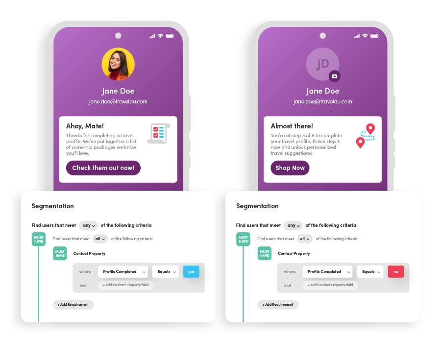 Iterable watches for changes in the user state constantly — no marketer intervention necessary. The moment a user becomes eligible, or ineligible, to see a message (based on the segmentation criteria you’ve set), Iterable updates the user’s view – in real time.