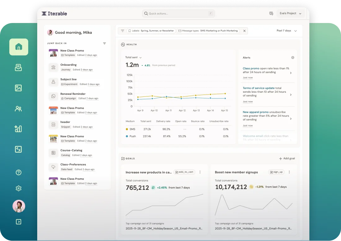 The new Iterable Command Center unifies goals, performance, and alerts into a single view. Marketing leaders can now see exactly what is driving — or dragging — performance across the entire portfolio, enabling faster prioritization and more confident ROI reporting.